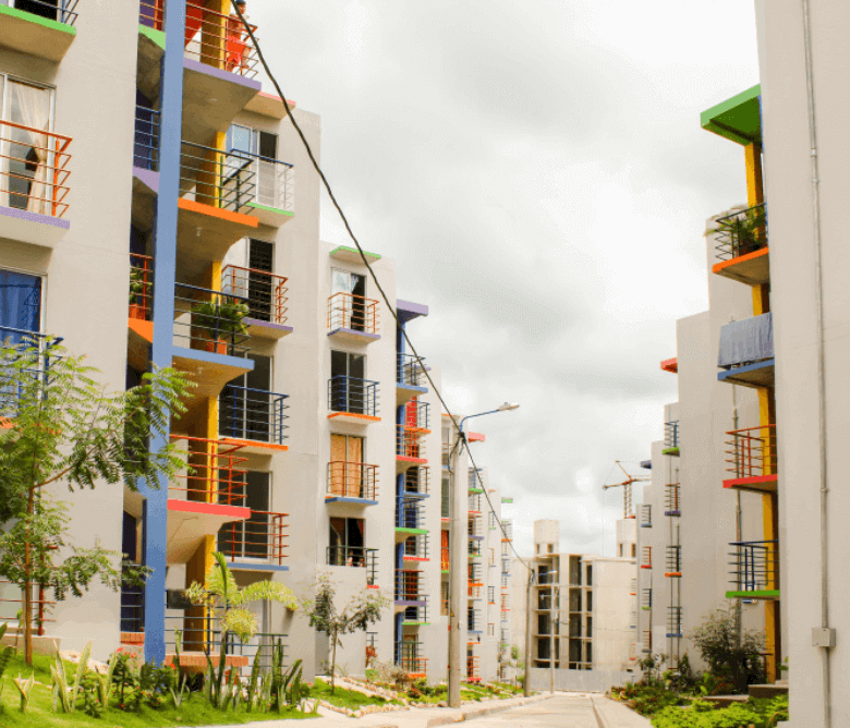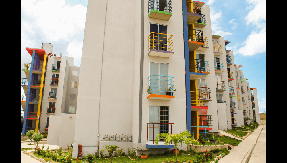 Urbanización LA ARBOLEDA, está conformada por 500 apartamentos de 2 alcobas, de 43,0 M2 cada uno, distribuidos en 50 torres de cinco pisos cada una, con dos apartamentos por piso.