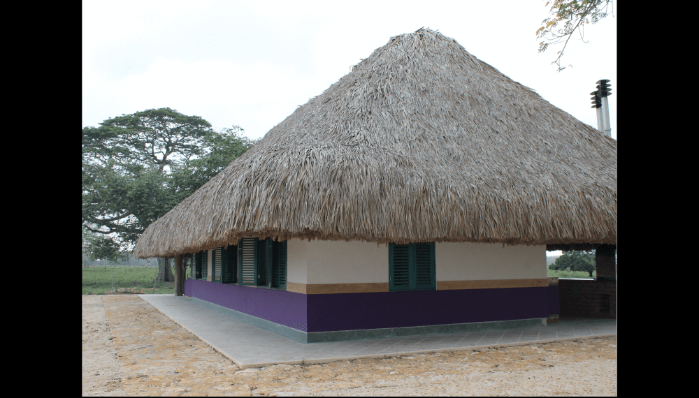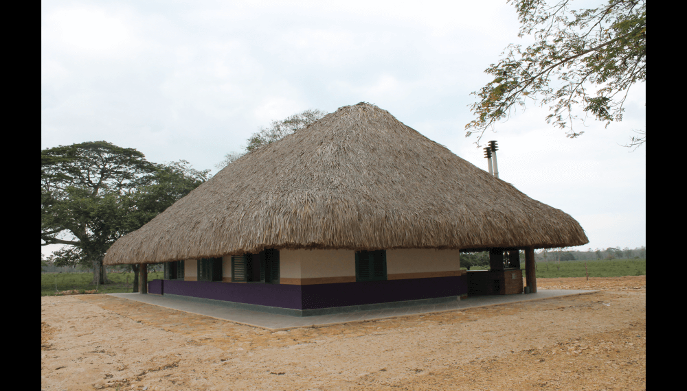 El planteamiento arquitectónico se fundamenta en el análisis de la tipología predominante de la vivienda campesina de la zona rural en la cual se emplaza. A partir de allí se propone una edificación de un piso y mezzanine, con diseño geométrico ortogonal y una cubierta a cuatro aguas en palma amarga, material predominante en la vivienda vernácula de la zona, logrando integración armónica con el paisaje.
