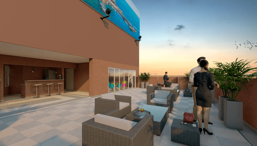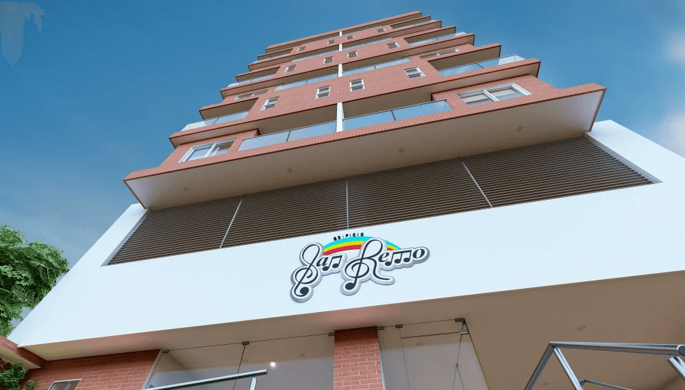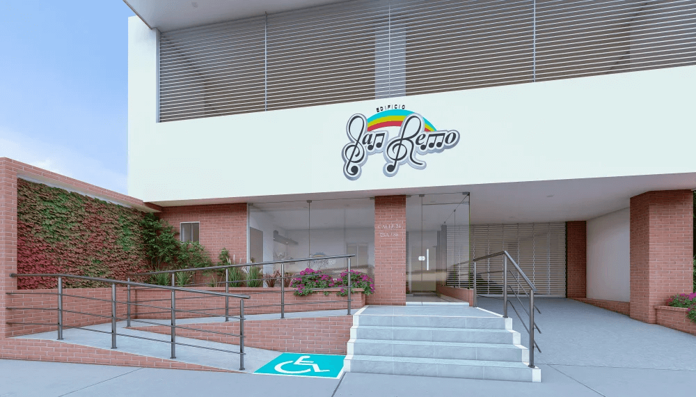 El Edificio SAN REMO inicia con un volumen de doble altura, que contiene los niveles de parqueo, continúa con 7 pisos de apartamentos y termina en una terraza tropical, que posibilita el disfrute de visuales cercanas y lejanas; privilegiandose de la condición de altura única en la zona.